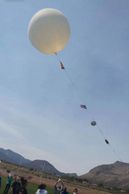 This is an AeroKat. It has a camera and a PocketLab Weather Sensor attached. One picture per second is taken. Weather data is taken one time per minute.