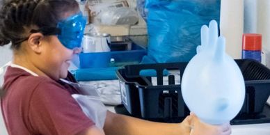 Sometimes Dean Crane comes to teach us about rocks. We all started rock collections. We have a rock polisher, a pottery wheel and and rock grinder. Ms. Nina uses a kiln to turn our clay into glass. We use the rock grinders and polisher to make jewelry.
