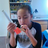 We build plastic models and rockets at the Kids' Science Cafe'. Our rockets even fly. As we learn how, we get to use motors that make our rockets go faster. Mr. Sauer says we can learn how to fly remote control airplanes if we want to learn.